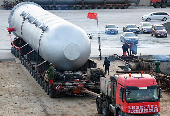 威海石島重工制造“巨無(wú)霸”四件套重裝啟運(yùn)